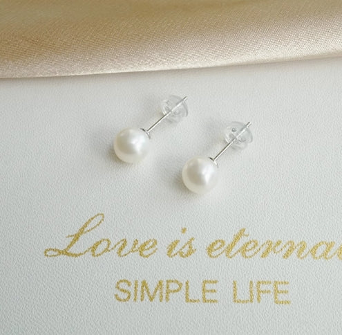 All-match White Freshwater Baroque Natural Pearl Earrings