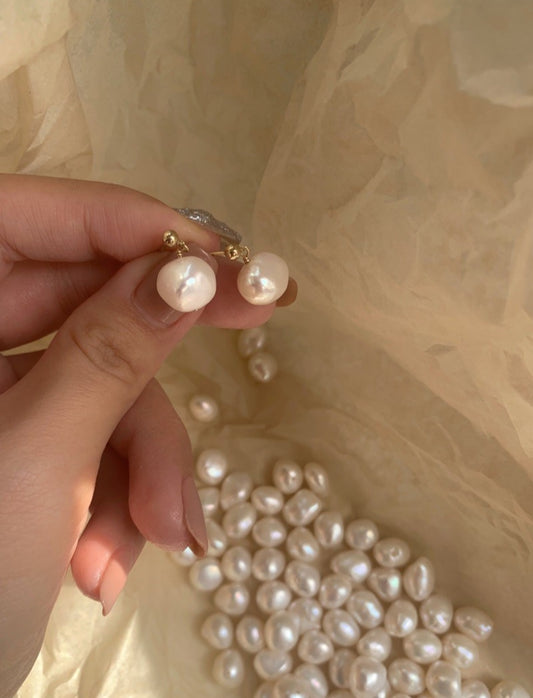 Small Sugar Bean Fat Baroque Freshwater Pearl Earrings
