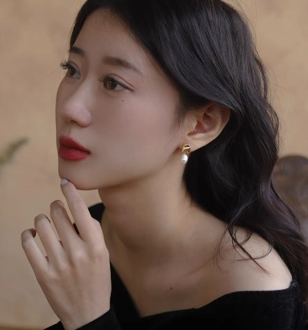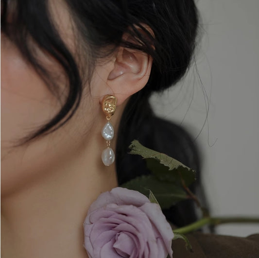 All-match White Freshwater Baroque Natural Pearl Earrings