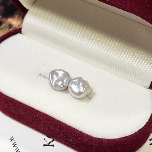 Baroque Asymmetric Rice Pearl Stud Earrings
