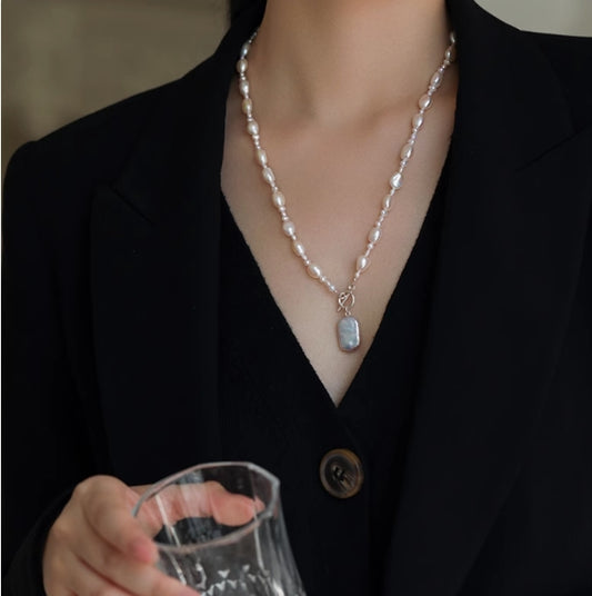 Bright rice pearl necklace clavicle chain