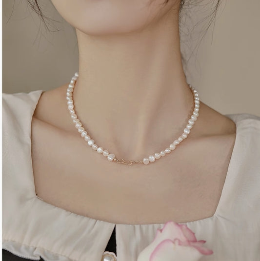 Bright light rice grain pearl necklace clavicle chain