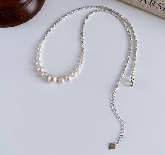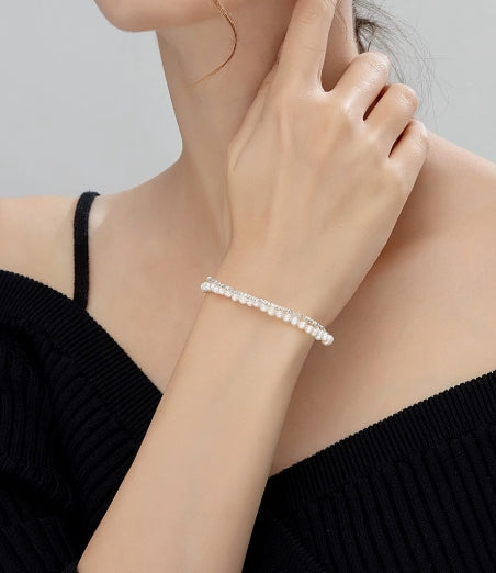 Silver double layer freshwater pearl bracelet