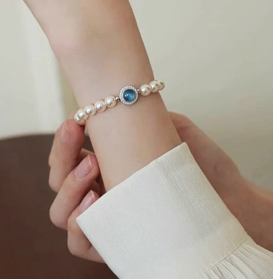 Aquamarine Natural Freshwater Pearl Bracelet