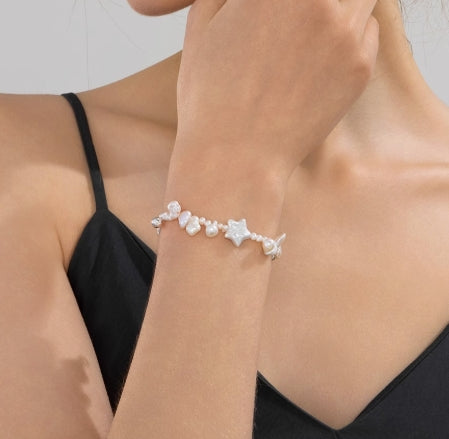 4-5mm nearly round pearl star bracelet