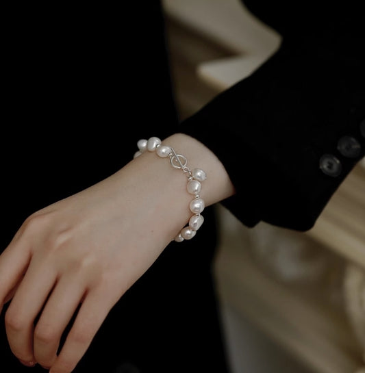Natural rare baroque freshwater pearl silver bracelet
