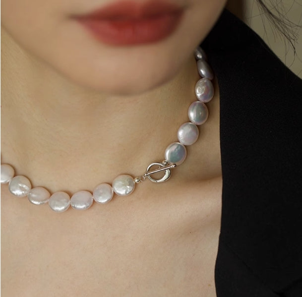 Full Baroque Button Freshwater Pearl Necklace