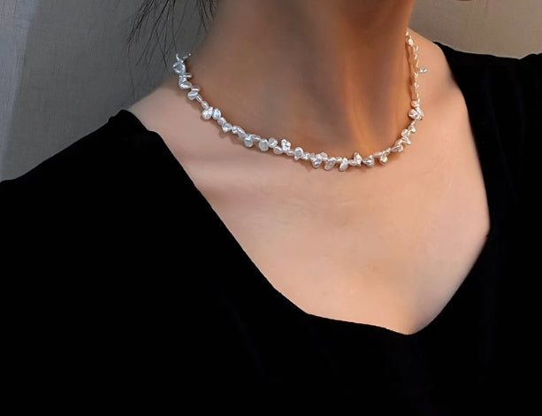 Mermaid Tears Freshwater Nucleus-Free Natural Pearl Petal Clavicle Necklace