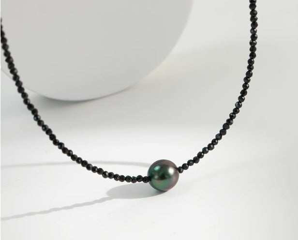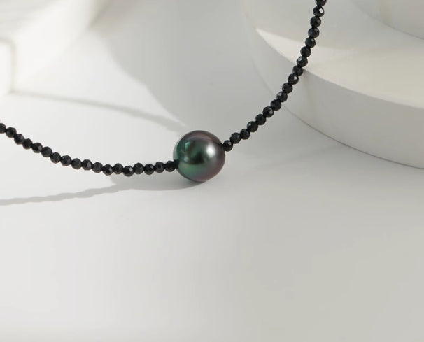 Pure natural seawater Tahitian black pearl black spinel necklace